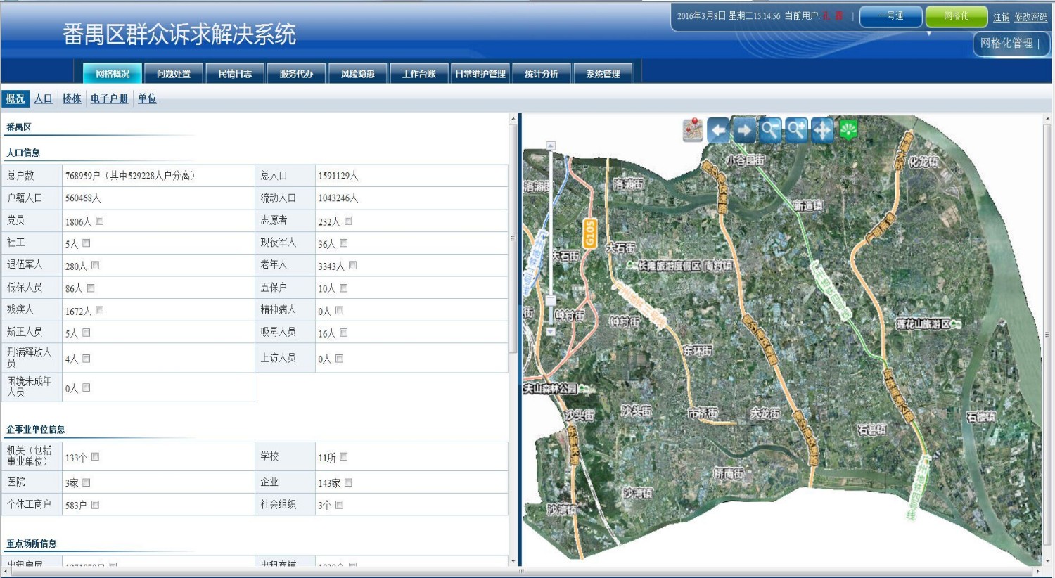 目前運行了10年的區(qū)長專線系統(tǒng)已升級為功能更加齊全的“一號通”系統(tǒng),同時將網(wǎng)格化系統(tǒng)、網(wǎng)格員個人終端PAD系統(tǒng)進行整合,建成番禺區(qū)群眾訴求解決系統(tǒng)平臺,同時將網(wǎng)格化系統(tǒng)與消防部門“消網(wǎng)通”、流管部門“流管通”、殘聯(lián)業(yè)務(wù)系統(tǒng)的融合,實現(xiàn)了城市管理類、公共事務(wù)類、安全隱患類、困難救助類等各種部(事)件的廣泛受理,為推行“常應(yīng)”結(jié)合網(wǎng)格化管理模式、發(fā)現(xiàn)化解各類安全隱患問題奠定了堅實的基礎(chǔ)。